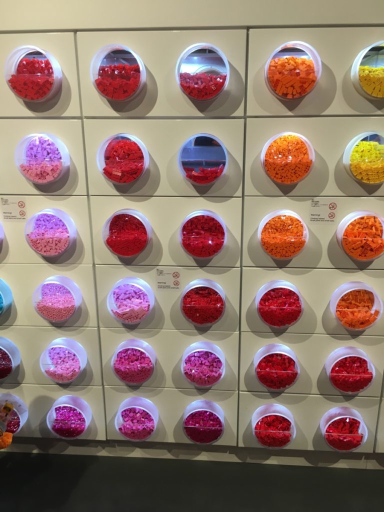 工場を抜けると『ピック・ア・ブリック』でレゴブロックの詰め放題ができます小カップが2000円、大カップが3000円でできます。何種類ものレゴブロックが並んでおり、特に色が鮮やかでキレイでした。子どもの写真もパシャリ!